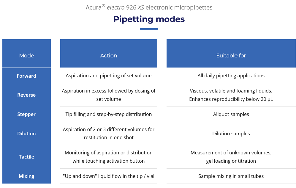O instrumento inclui um motor controlado por microprocessador e uma bateria recarregável. Possui ainda um software intuitivo que dispensa etapas de programação complexas. Oito modelos abrangem a gama de volume de 0,1 a 1000 µL. Os módulos volumétricos intercambiáveis adicionais estão disponíveis como acessórios.