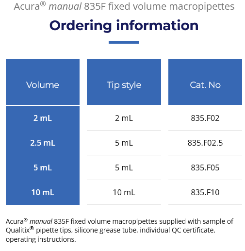 As macropipetas de volume fixo apresentam o desempenho mais estável. Estas pipetas manuais proporcionam resultados consistentes para quaisquer testes analíticos ou de diagnóstico de rotina, eliminando o risco de ajustes de volume incorretos. Três anos de garantia.