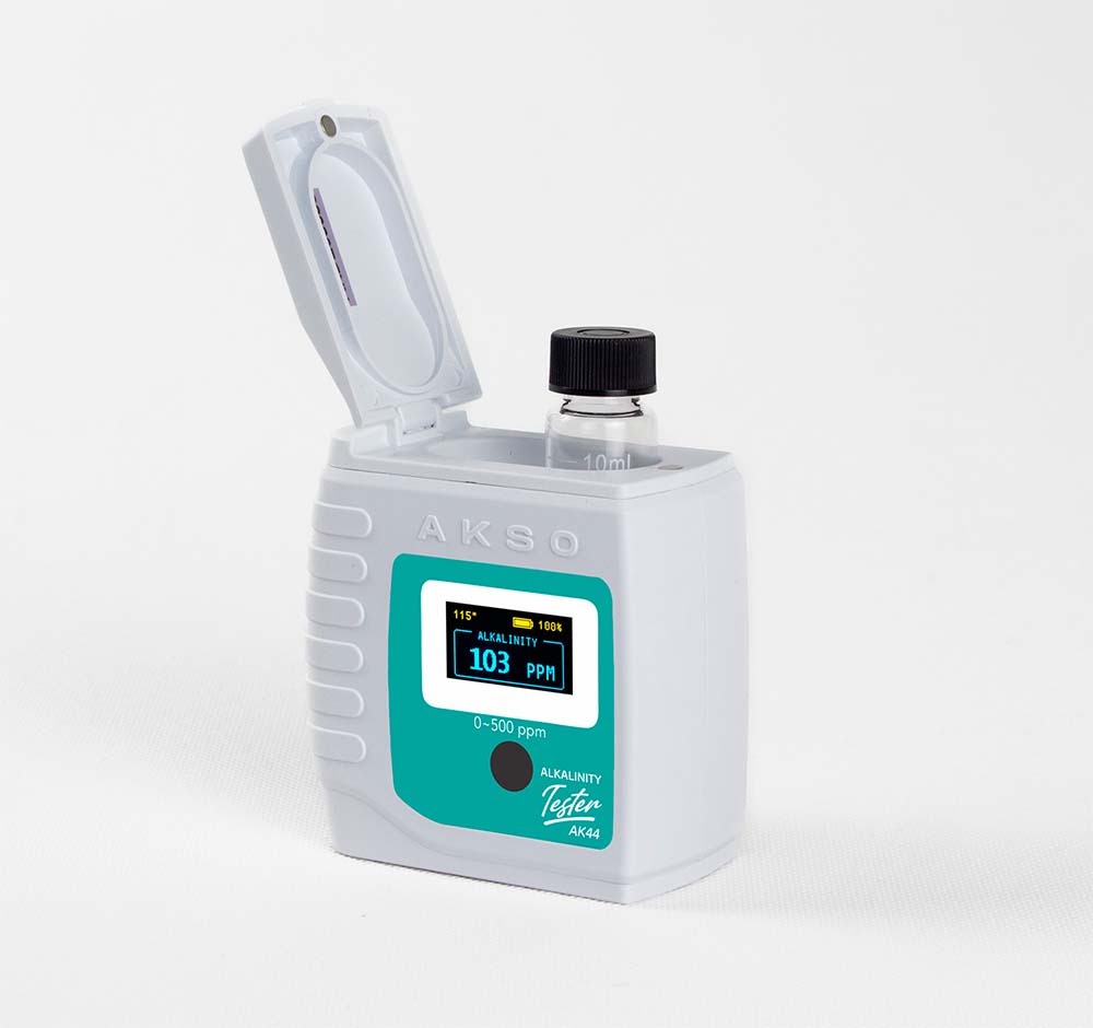 O medidor de alcalinidade AK44 indica a quantidade de substâncias alcalinas (carbonatos de cálcio e magnésio, bicarbonatos, cloretos e sulfatos) na água, refletindo a capacidade da água para neutralizar os ácidos. Um nível de alcalinidade adequado garante que o pH se mantém relativamente constante mesmo com a adição de pequenas quantidades de ácido ou base. A alcalinidade é importante em aplicações de água potável, pois os seus valores determinam quais os produtos químicos que podem ser utilizados e em que quantidades.