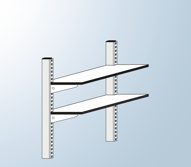 • A altura das prateleiras pode ser alterada facilmente através das posições definidas nos prumos.