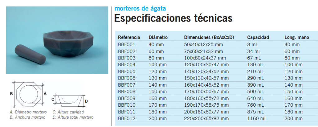 Elevada dureza (7 na escala de Mohs), que proporciona uma grande resistência à abrasão, garantindo que as amostras não são contaminadas por partículas desprendidas do almofariz.
