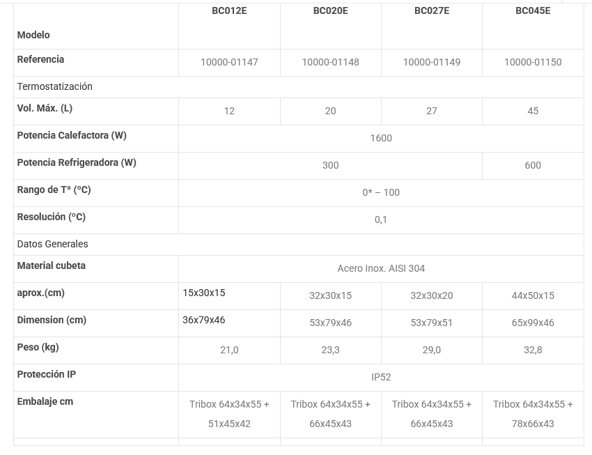 Depósito interior em aço inoxidável AISI 304 e chassis exterior em metal protegido com tinta epóxi de alta resistência para ambientes agressivos.