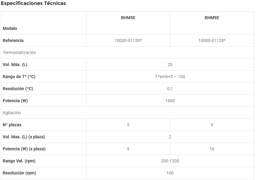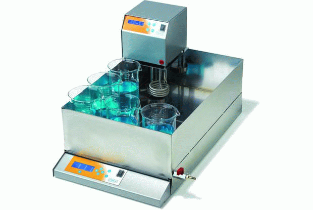 A temperatura é ajustável a partir do termóstato de imersão e a velocidade de agitação é ajustável individualmente em cada secção.