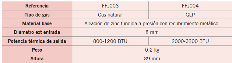 Com fornecimento de ar ajustável e ligação de gás cónica com nervuras.