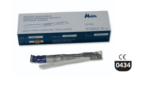 Fornecidos em caixas de 10 bisturis completos, com lâmina em aço carbono e cabo em plástico, totalmente estéreis e embalados individualmente.