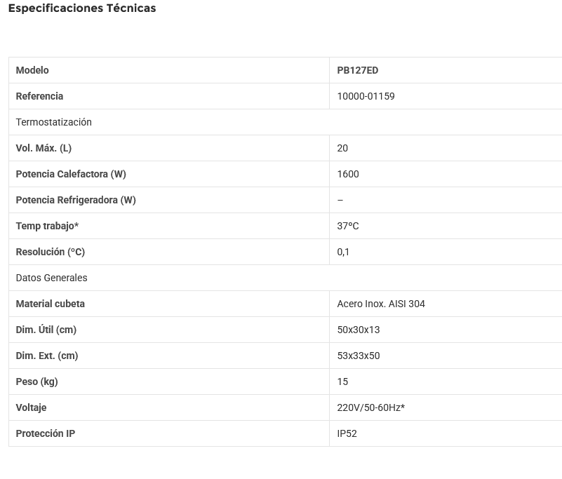 Temperatura controlada por microprocessador com regulação eletrónica digital.