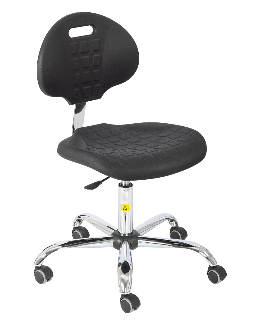 A Cadeira Antiestática em Poliuretano é a solução ideal para ambientes que exigem um controlo eletrostático eficaz. Fabricada com poliuretano macio e dissipativo, esta cadeira oferece não só um aspeto estético, mas também um excelente suporte e conforto para o uso diário.