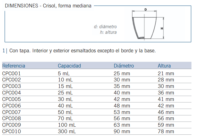 3| Cada cadinho é fornecido completo com uma tampa esmaltada que possui uma pega para facilitar o manuseamento e permite a saída de gases e vapores gerados durante a reação de calcinação.