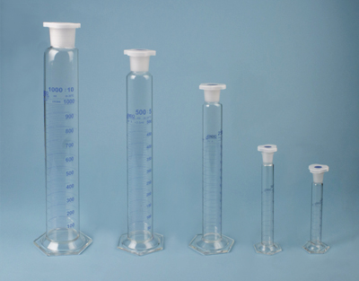 Proveta graduação azul, base hexagonal, com tampa em PP