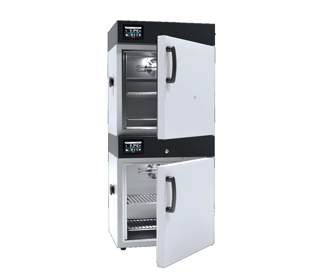 As unidades de câmara dupla combinam uma incubadora refrigerada ST com um refrigerador CHL (disponível nas mesmas versões BASIC/COMFORT/PREMIUM) ou com um congelador ZLN 85.