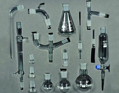 Este conjunto de 16 peças foi concebido para utilização em laboratórios de ensino superior e industriais, com uma capacidade de síntese até 150 g, permitindo a configuração de diversos processos de química orgânica.