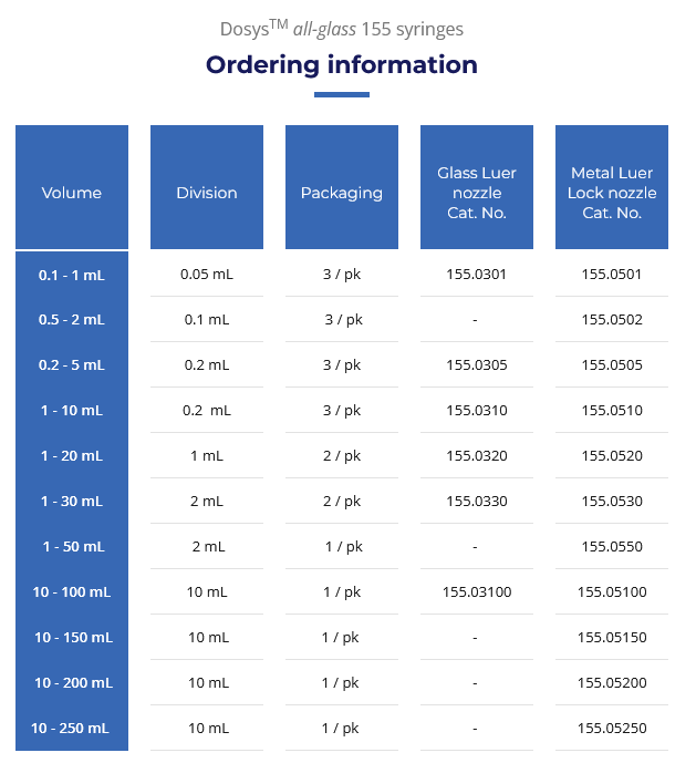 As seringas reutilizáveis em vidro borossilicato oferecem uma resistência superior a choques químicos e térmicos. Uma alternativa valiosa e de baixo custo às seringas de plástico descartáveis em qualquer aplicação que envolva líquidos. Também adequadas para o manuseamento de diversos óleos, derivados do petróleo, colas, corantes, perfumes, óleos essenciais e produtos químicos orgânicos (exceto ácido fluorídrico).