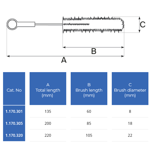 Escovas de nylon resistentes com ponta tufada e cabo de plástico para limpeza de tubos.