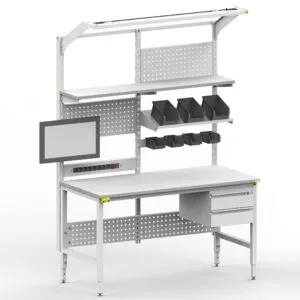 A bancada de trabalho está em conformidade com as normas IEC 61340-5-1 e ANSI S20.20-2021