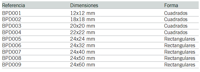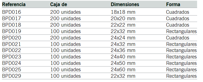 Lamelas quadradas e rectangulares