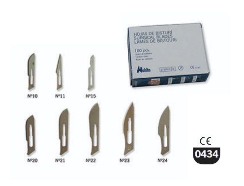 As lâminas de bisturi diferem não só em tamanho, mas também em formato. Com base nestas características, cada modelo recebe um número universal para identificação.