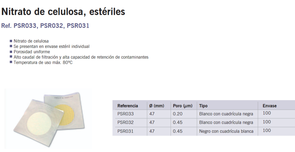 Membranas Nitrato de celulose, estéril