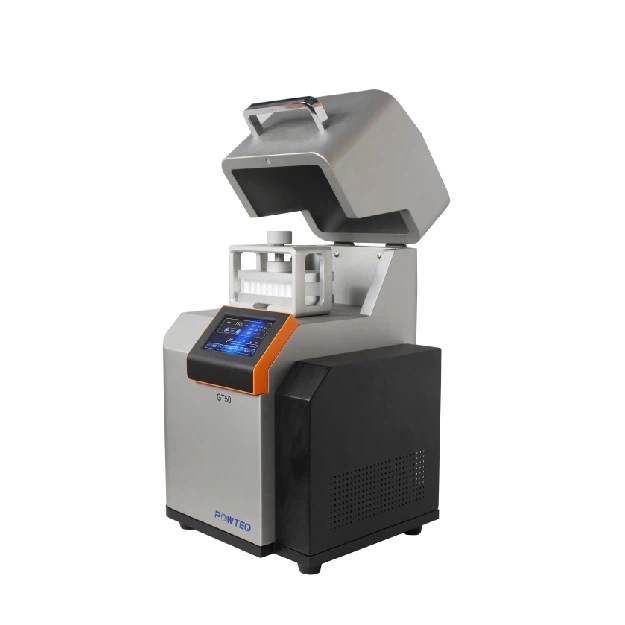 O GT50 é um moinho especialmente concebido para o pré-tratamento rápido e de alto rendimento de amostras biológicas. Utilizando diferentes adaptadores, podem ser processadas simultaneamente até 96 amostras por centrífuga comum ou criotubos. Diferentes tipos de amostras biológicas (solo, tecidos/órgãos vegetais e animais, bactérias, leveduras, fungos, esporos, espécimes paleontológicos, etc.) podem ser trituradas com o uso de reagentes adequados, dos quais o ADN, ARN e proteínas originais podem ser facilmente extraídos e purificados.