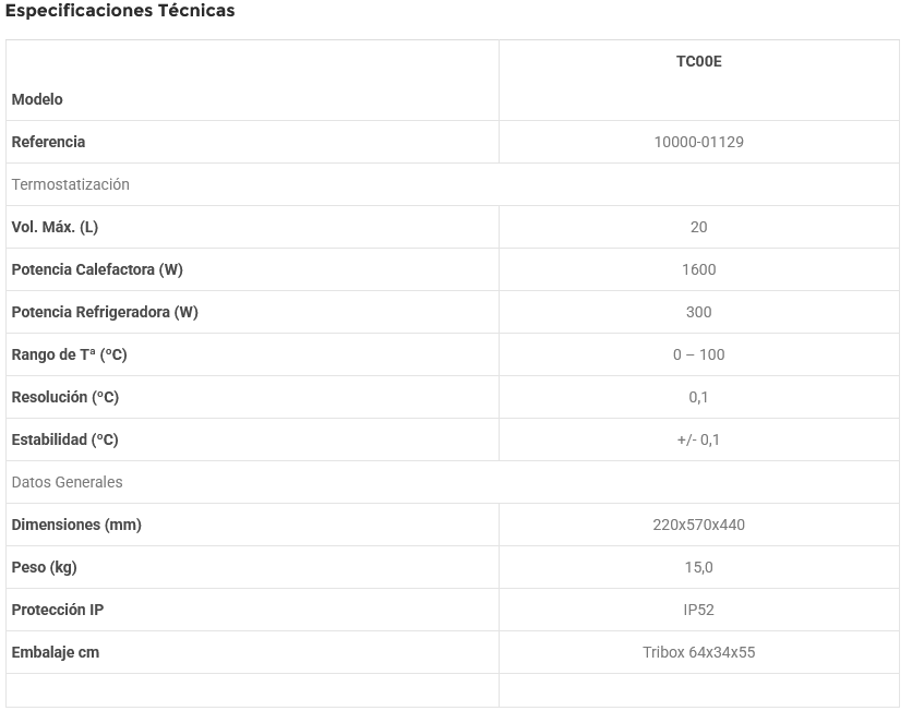 Teclado de membrana sensível ao toque. Bomba de homogeneização com capacidade de 6 litros/minuto (Pressão máxima: 200 mbar).