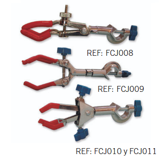 O conjunto de pinças de laboratório inclui uma vasta gama de instrumentos utilizados para segurar gobelés, buretas, termómetros, condensadores, etc., em conjuntos de laboratório ou para o manuseamento fácil e seguro de recipientes aquecidos a altas temperaturas ou que contenham reagentes perigosos, tais como tubos de ensaio, cadinhos, cápsulas de evaporação ou gobelés. Navegue pela nossa extensa seleção de agrafos de laboratório para encontrar o modelo de que necessita.