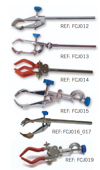 O conjunto de pinças de laboratório inclui uma vasta gama de instrumentos utilizados para segurar gobelés, buretas, termómetros, condensadores, etc., em conjuntos de laboratório ou para o manuseamento fácil e seguro de recipientes aquecidos a altas temperaturas ou que contenham reagentes perigosos, tais como tubos de ensaio, cadinhos, cápsulas de evaporação ou gobelés. Navegue pela nossa extensa seleção de agrafos de laboratório para encontrar o modelo de que necessita.