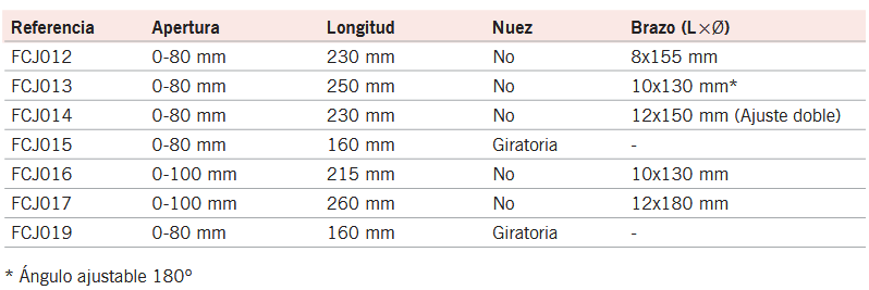 Os modelos com porca possuem uma porca giratória para varões até 18 mm de diâmetro.