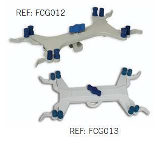 Pinças automáticas para segurar duas buretas em simultâneo. Permitem a visualização das graduações em toda a escala da bureta.