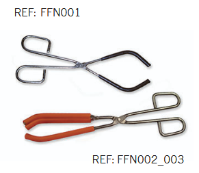 Permitem o manuseamento e transporte seguros de gobelés aquecidos a altas temperaturas ou que contenham substâncias perigosas. Fabricados em aço cromado, possuem pontas revestidas em PVC para evitar que o recipiente escorregue durante o manuseamento.