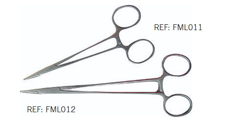 Utilizados para segurar e manusear agulhas cirúrgicas curvas, são muito semelhantes às pinças hemostáticas; a principal diferença reside nas suas mandíbulas curtas e firmes, que seguram a agulha sem danificar o fio de sutura.