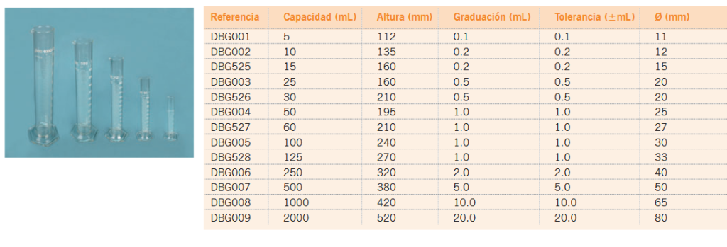As provetas graduadas são ferramentas indispensáveis ​​no trabalho diário de laboratório para preparar soluções ou medir volumes de todo o tipo de líquidos. A Endo Glassware oferece uma linha completa de provetas graduadas em vidro de elevada qualidade nas classes A e B. Todas possuem uma base hexagonal para maior estabilidade, foram calibradas a 20 °C com ajuste de conteúdo (IN) e são fabricadas de acordo com a norma ISO 4788.