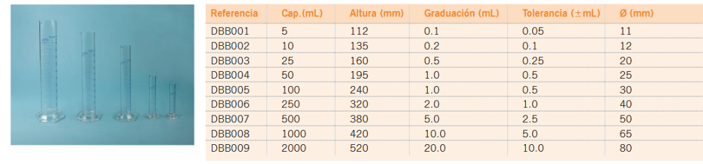 As provetas graduadas são ferramentas indispensáveis ​​no trabalho diário de laboratório para preparar soluções ou medir volumes de todo o tipo de líquidos. A Endo Glassware oferece uma linha completa de provetas graduadas em vidro de elevada qualidade nas classes A e B. Todas possuem uma base hexagonal para maior estabilidade, foram calibradas a 20 °C com ajuste de conteúdo (IN) e são fabricadas de acordo com a norma ISO 4788.