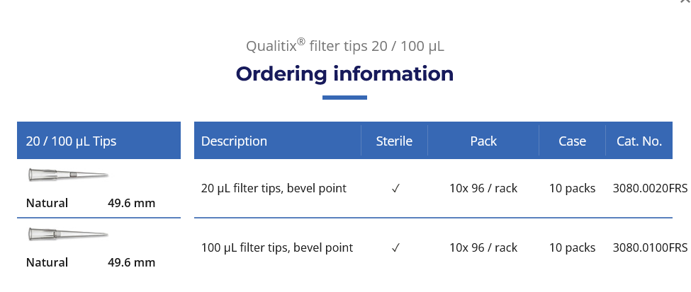 Proteção eficiente contra aerossóis. Inclui filtro hidrofóbico de PEAD com poros de 10 µm para bloquear qualquer contaminante. Certificado com um altíssimo nível de pureza. Ponteiras disponíveis apenas em racks estéreis. Os bastidores de ponteiras vazios podem ser reciclados para utilização com o sistema de enchimento de bastidores Tipfill.