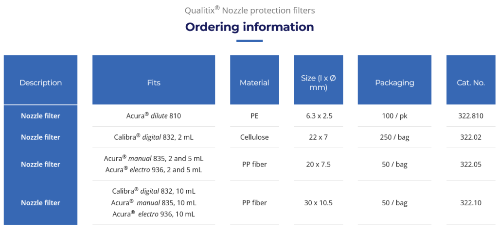 DescriçãoProteção contra o transbordo de líquidos ou a contaminação por aerossóis. Os filtros são intercambiáveis, não estéreis e não autoclaváveis.