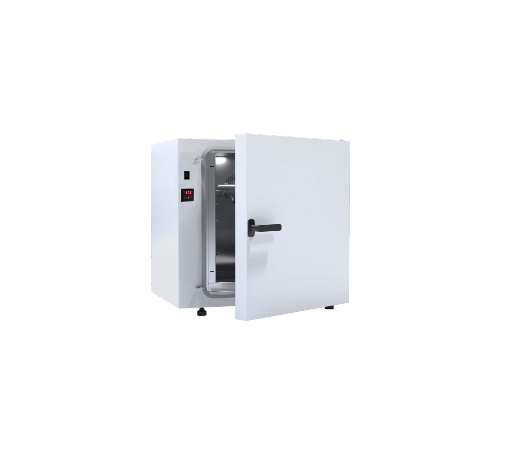 Uma estufa de secagem simples com circulação de ar natural é um equipamento concebido para operar a temperaturas de +5°C acima da temperatura ambiente até +250°C. Não existe ventilador na câmara interior da estufa; em vez disso, o ar circula naturalmente (por gravidade). A vantagem de uma estufa com circulação de ar natural é o seu funcionamento silencioso, graças à ausência de um ventilador, que elimina o ruído constante que este provocaria.