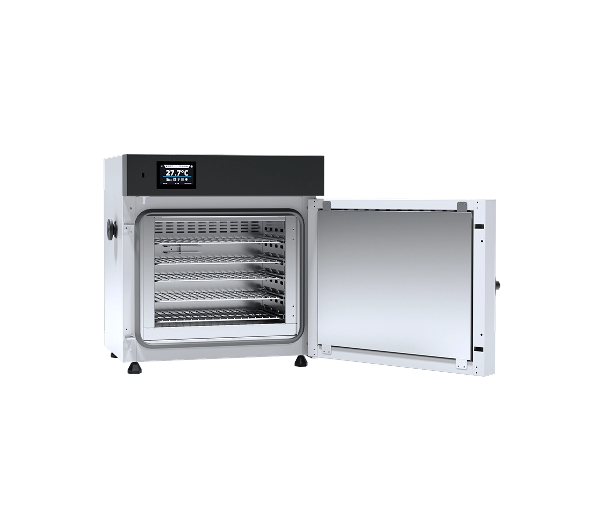 As estufas de secagem com circulação de ar natural são concebidas para secagem a temperaturas que variam entre +5°C acima da temperatura ambiente até +300°C. A circulação de ar natural significa que não existe ventilador instalado na câmara interior; em vez disso, o ar circula naturalmente por gravidade. Isto torna este tipo de estufa ideal para aquecer materiais soltos, uma vez que não são aspirados por um ventilador. Outra vantagem das estufas de secagem com circulação de ar natural é o seu funcionamento silencioso, graças à ausência de ventilador, que elimina o ruído constante.