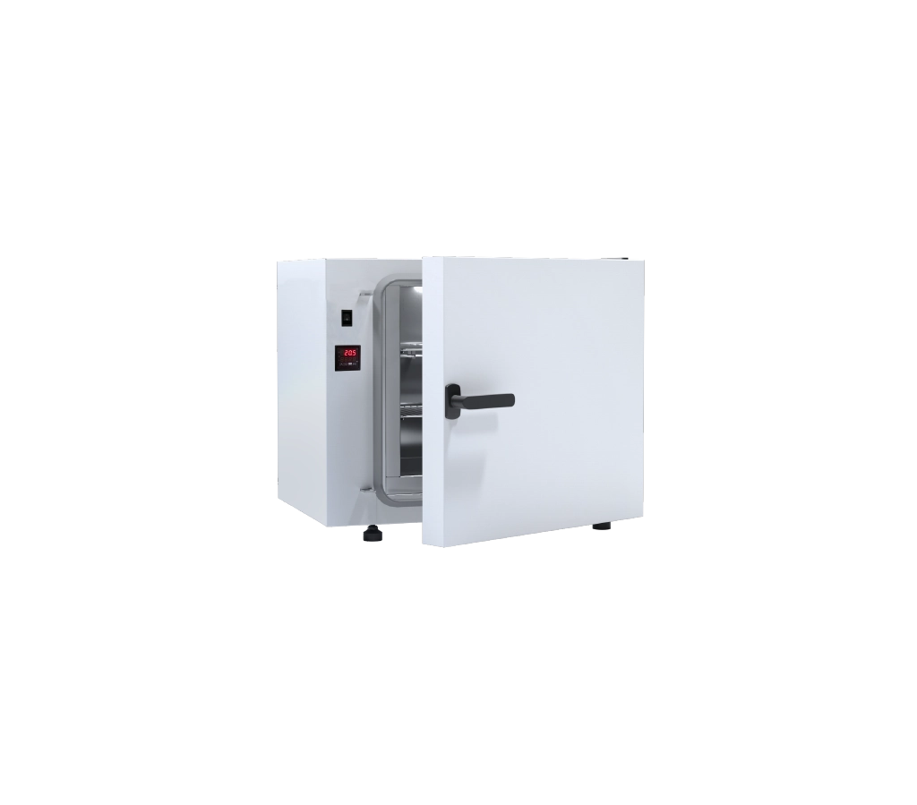 Uma estufa de secagem simples com circulação de ar natural é um equipamento concebido para operar a temperaturas de +5°C acima da temperatura ambiente até +250°C. Não existe ventilador na câmara interior da estufa; em vez disso, o ar circula naturalmente (por gravidade). A vantagem de uma estufa com circulação de ar natural é o seu funcionamento silencioso, graças à ausência de um ventilador, que elimina o ruído constante que este provocaria.