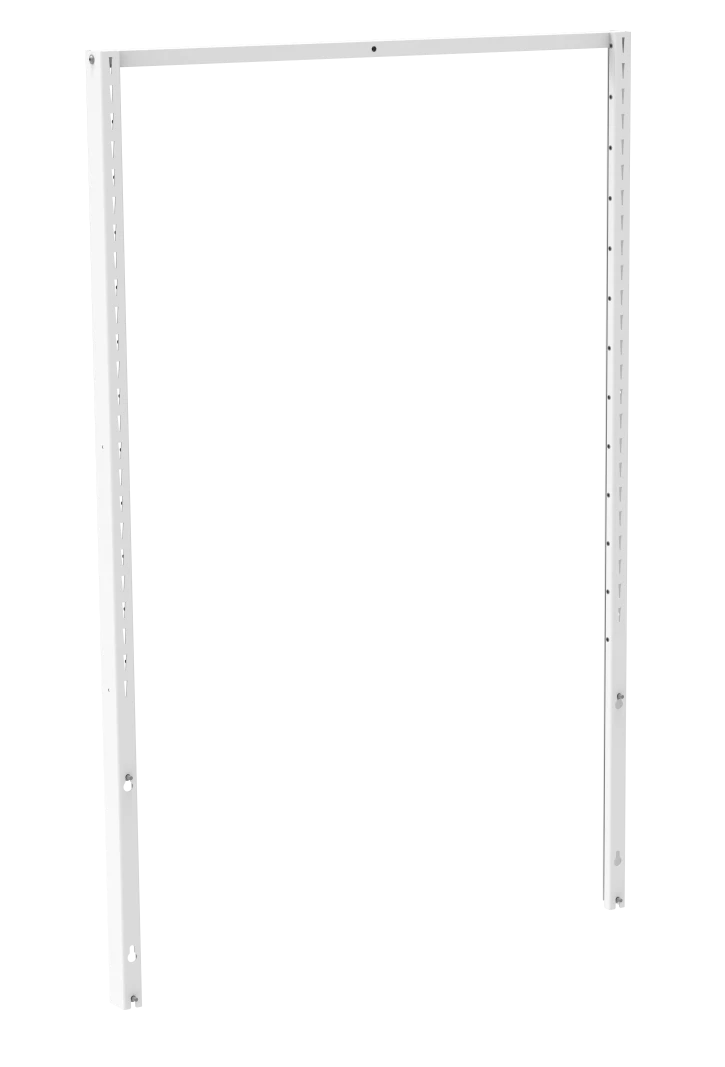 Fabricado em chapa metálica com 2,0 mm de espessura, o suporte garante uma elevada durabilidade e resistência a danos, mesmo sob utilização intensa. Equipado com recortes para montagem espaçados a cada 50 mm, permite a instalação flexível de painéis perfurados e outros acessórios.