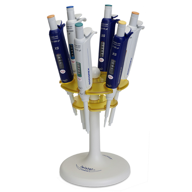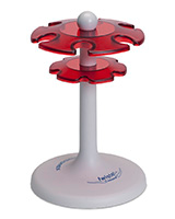 Estação de trabalho para pipetas com design exclusivo e 6 posições, com ótimas características. O modelo comporta seis pipetas da maioria das marcas, oferecendo uma solução de armazenamento ideal para qualquer laboratório. A rotação permite a seleção rápida dos instrumentos. Fácil desmontagem para uma manutenção simplificada. Disponível em sete cores translúcidas. Discos intercambiáveis.